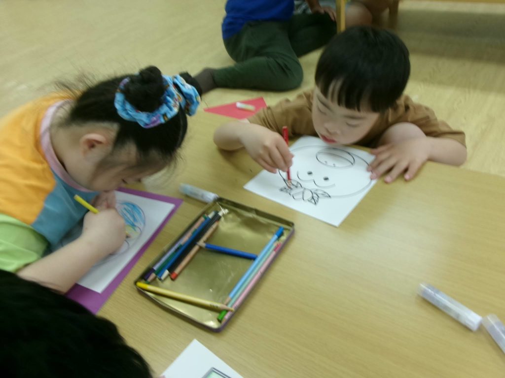 どんなお面がいいかな~?と思いを込めて彩ってくれました🎵