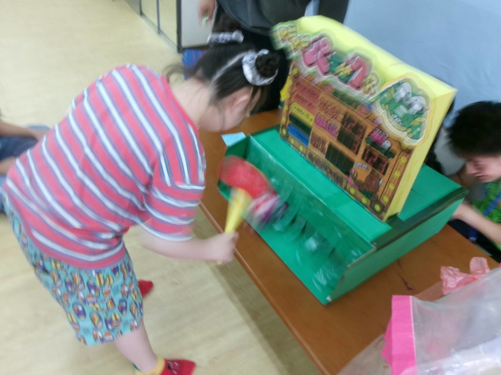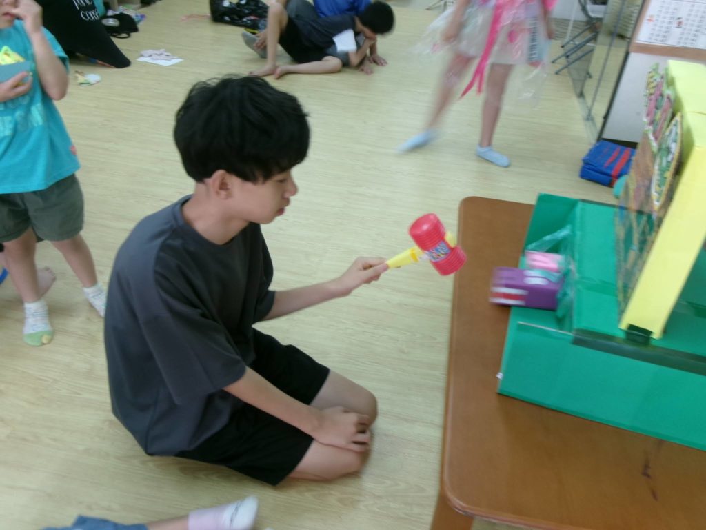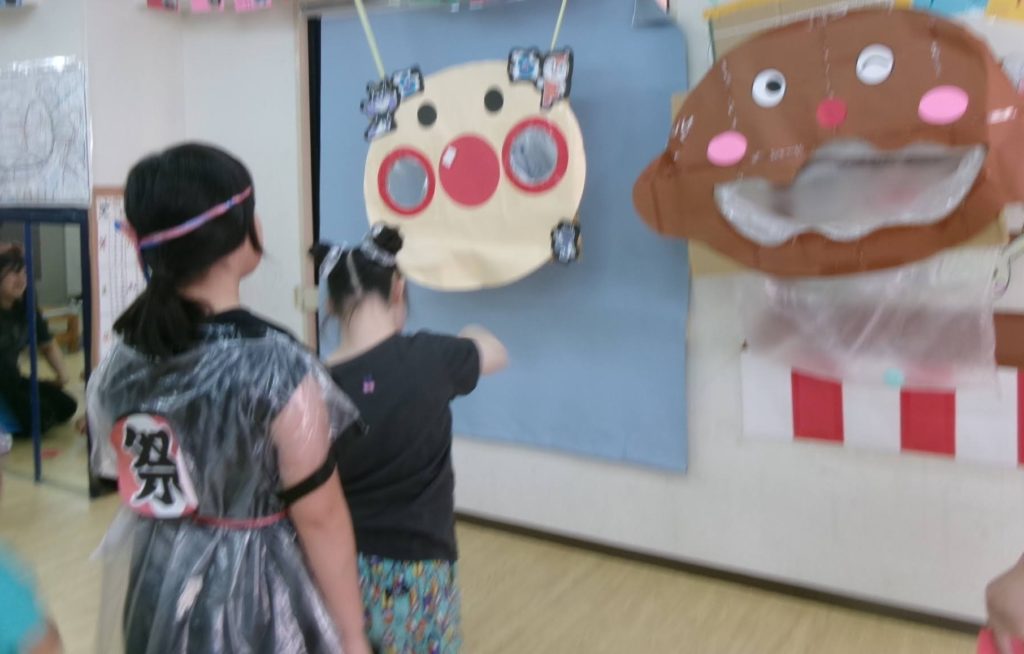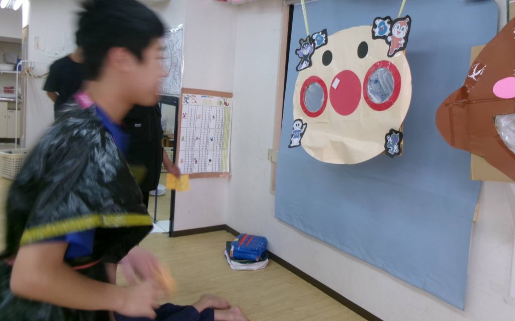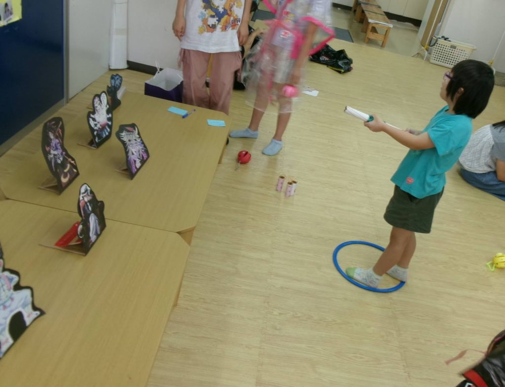 思ったより穴が小さく見えて難しいかなあと思っていましたが、ポンポン投げ入れてくれる子ども達でした✨