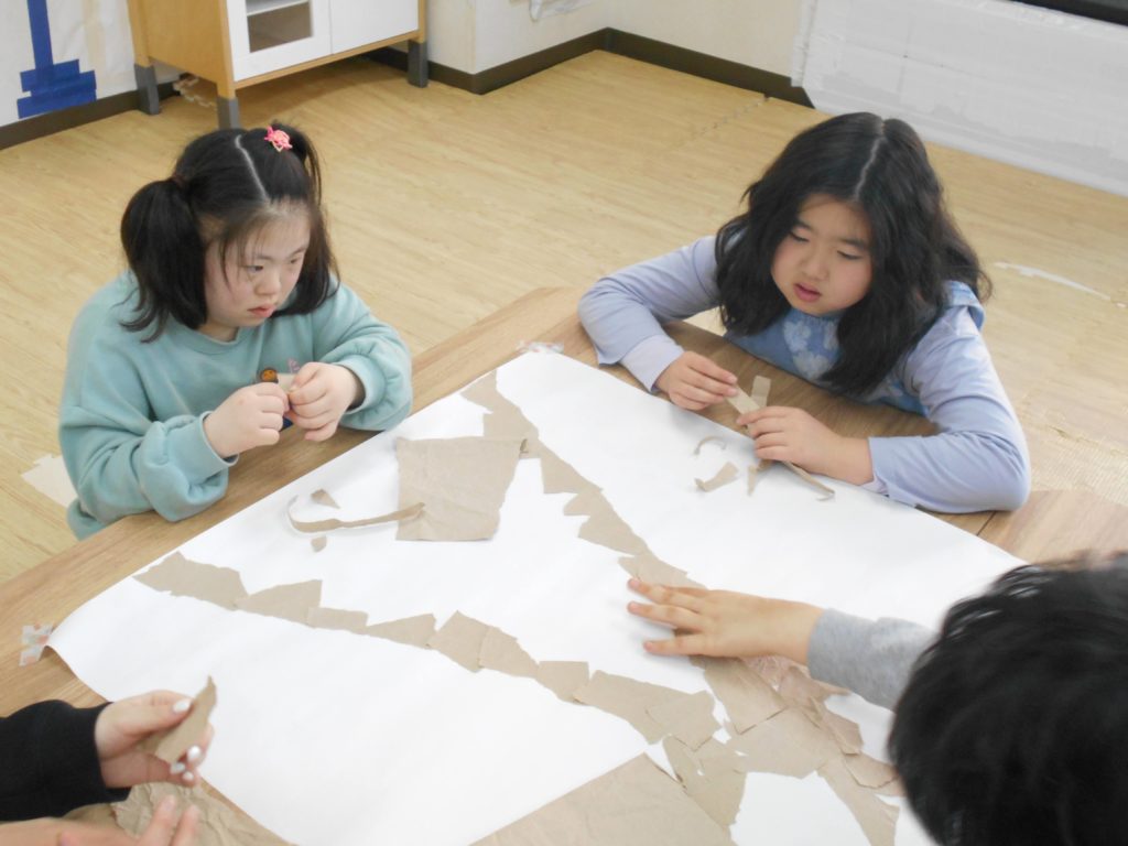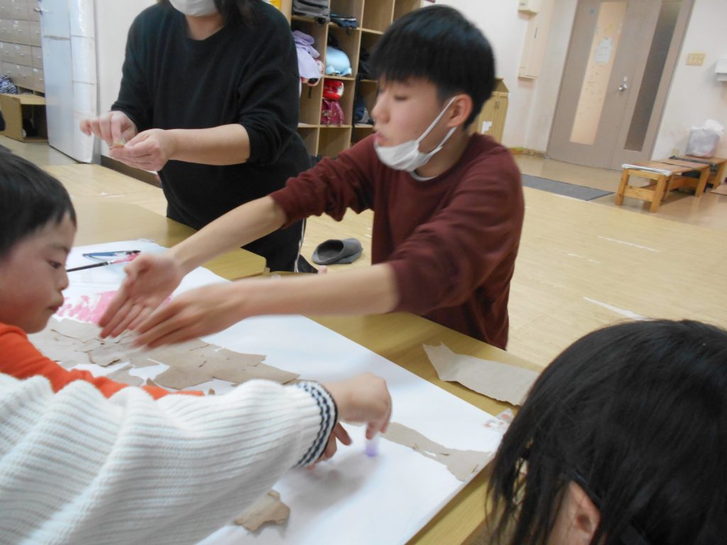 ハサミを沢山使いながら、チョキチョキ集中して取り組んでくれています✂