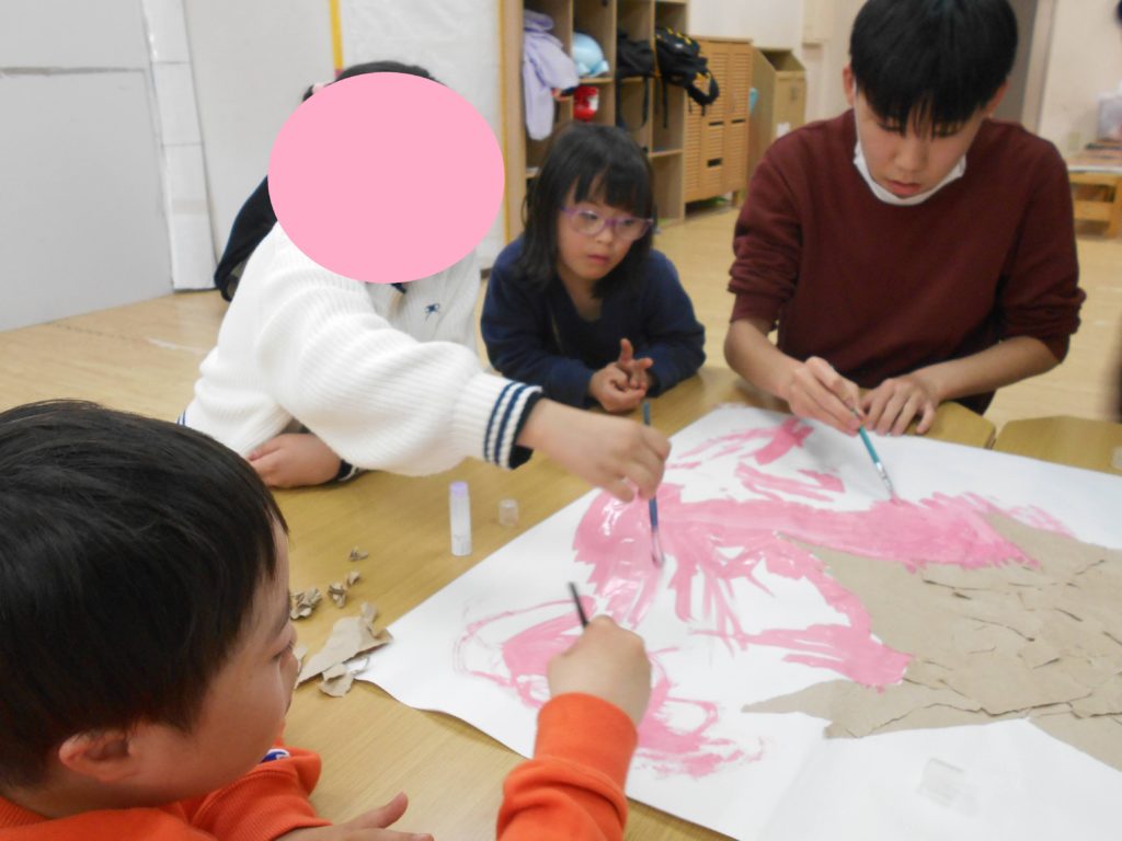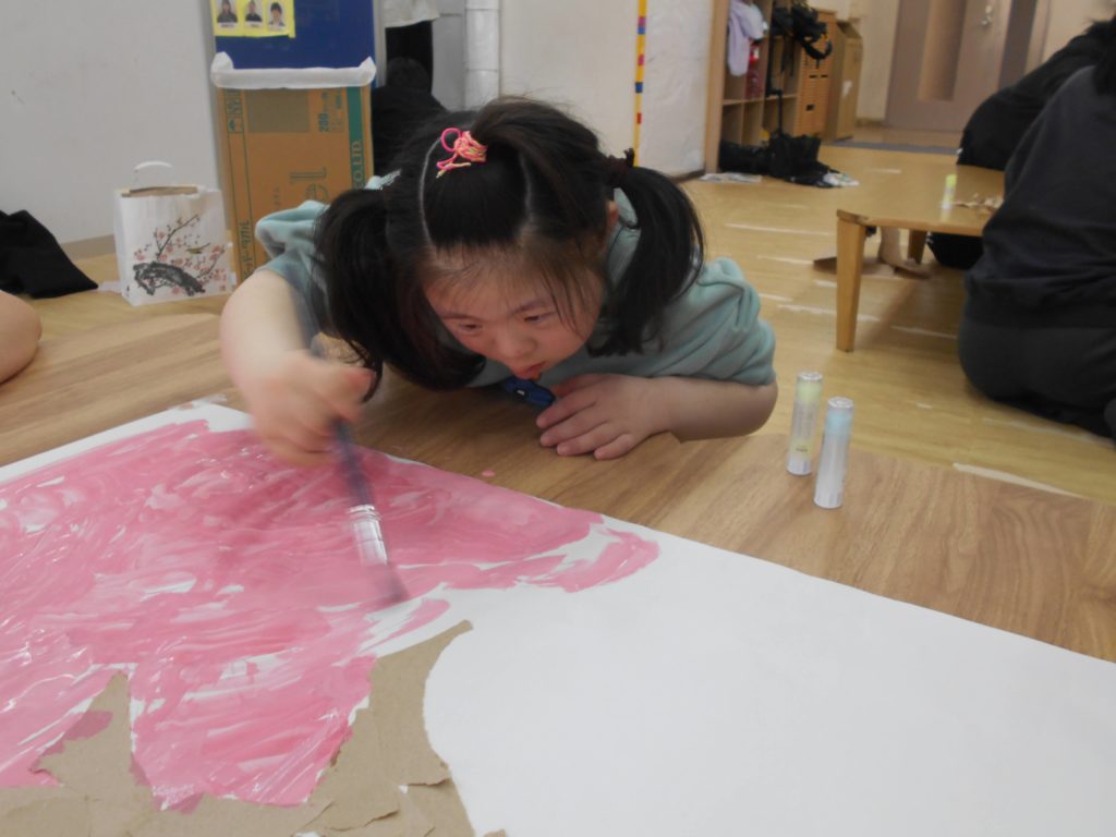 花びらの部分は絵の具やスタンプで作っていきます🌸
