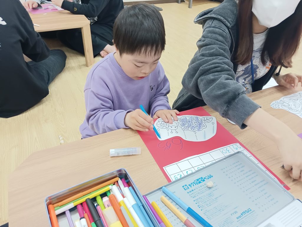 数字を書いたり、その月に合った塗り絵をしていきます🌈