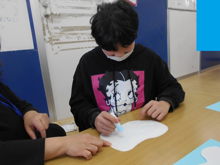 自分で下書きしてもらいハサミで切ってもらって