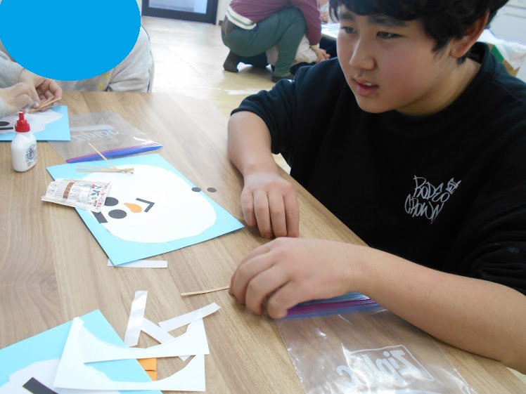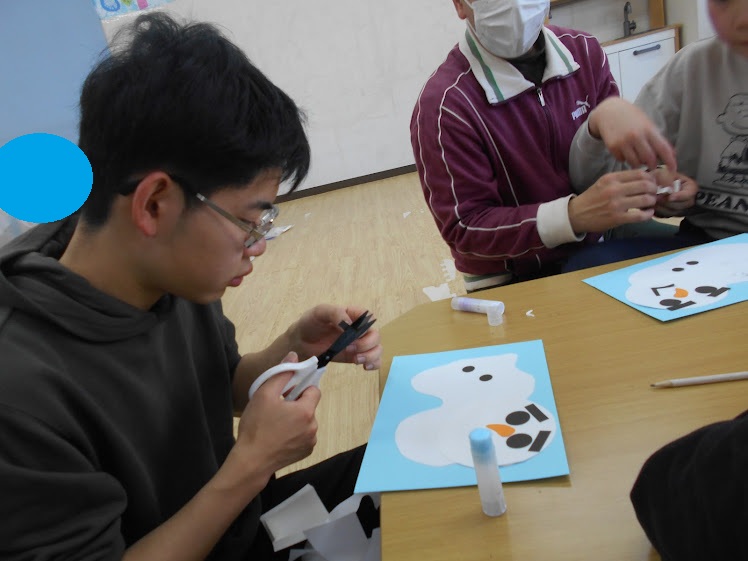 続きましては、雪だるまコラージュ製作⛄
