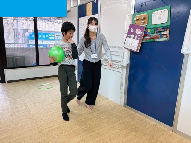 こちらの活動では、職員が体の部位を言って「ボール!!」と言われたら